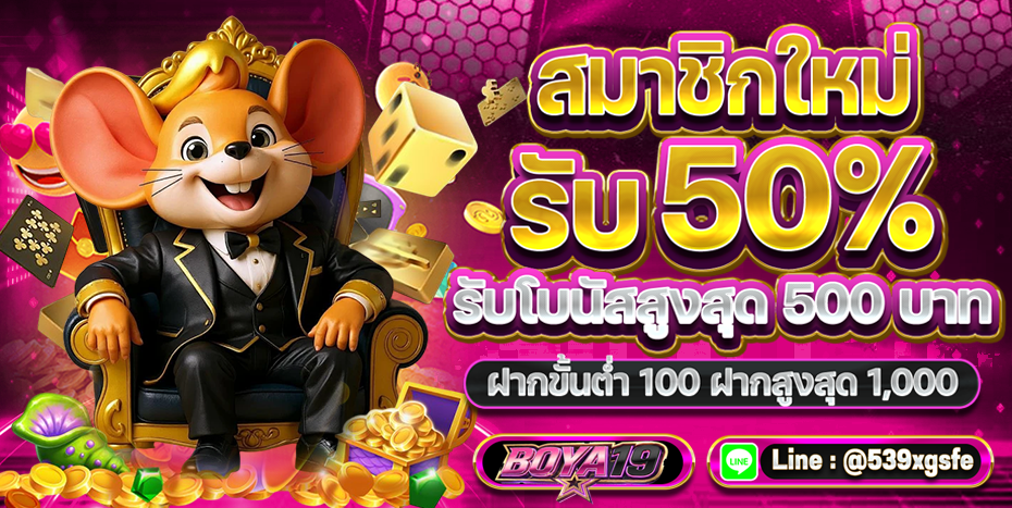 - สมาชิกใหม่รับ 50% รับโบนัสสูงสุด 500 บาท